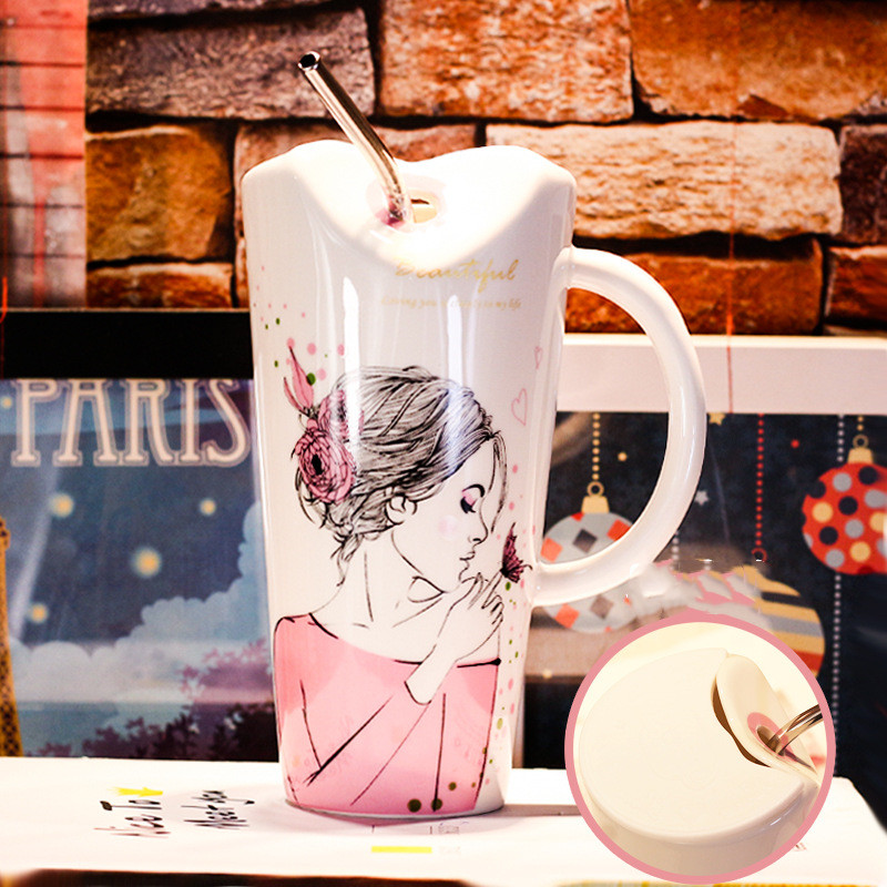 Sex trend mug with lid and spoon large capacity